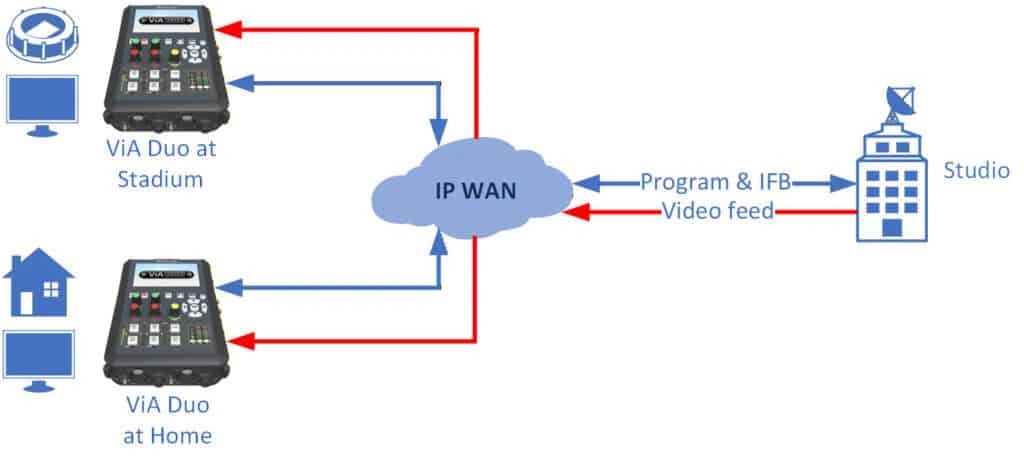 ViA Duo supports off-tube commentary so your commentary team can get a live game day feed and call live from wherever they are in the world – even from the comfort of their own home. You can even use the codec at a stadium and receive a video return feed from the studio including stats and other live or recorded elements of the broadcast. Paired with a real-time mix-minus comms feed, your commentary team will get the full picture.