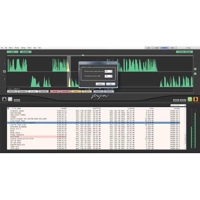 Other additions under VoxPro7 include support for importing 24-bit files, a new feature in GapBuster to automatically detect the noise floor, and the use of a hardware-based graphics library for smoother and more efficient performance.